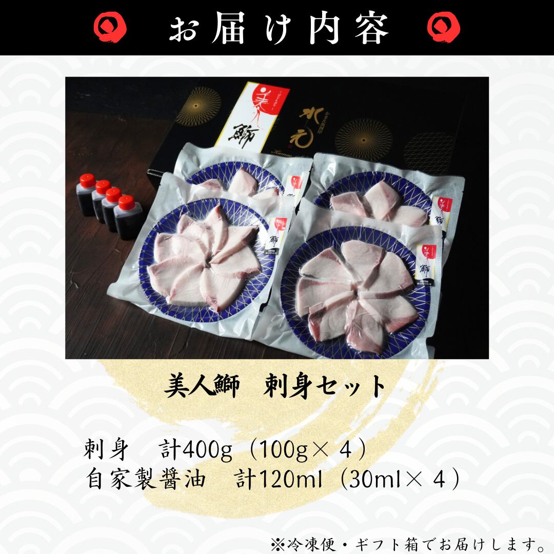 ①美人鰤刺身400g(100g×4皿)